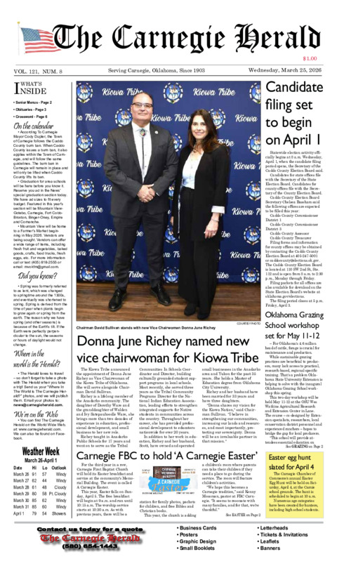 New Kiowa Tribe Chairman David B. Sullivan said the Tribe, as a whole, needed to put the trauma...